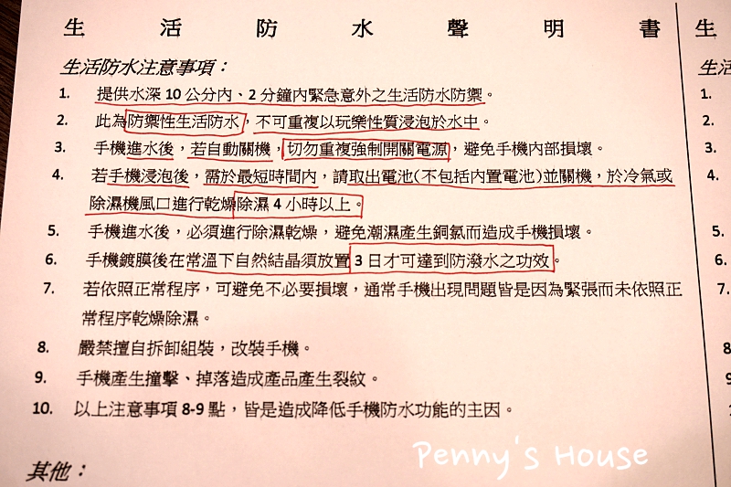 關於手機鍍膜還有一張生活防水聲明書要簽署,